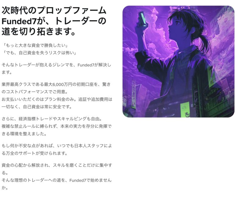 この記事では、Funded7の仕組みや特徴、メリット・デメリット、3つのプランの詳細比較、取引ルール、出金方法、そして実際の評判・口コミまで徹底解説していきます。