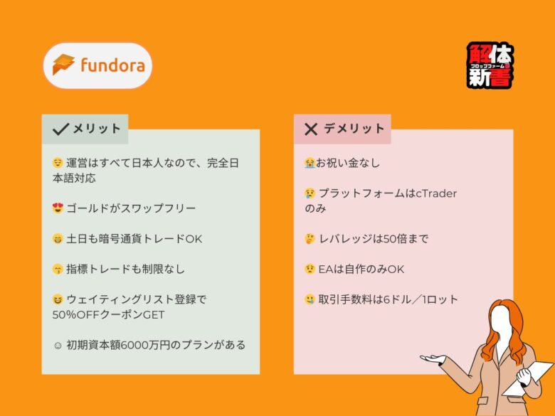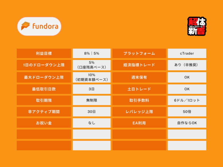 FundoraとFintokeiはそれぞれ異なるニッチ市場に焦点を当てています。目的やあなたのスタイルに合わせて最適なプロップファームを選択しましょう😉