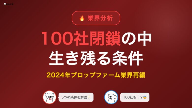 プロップファーム業界再編|2024年に100社閉鎖の中、生き残る会社の5つの条件